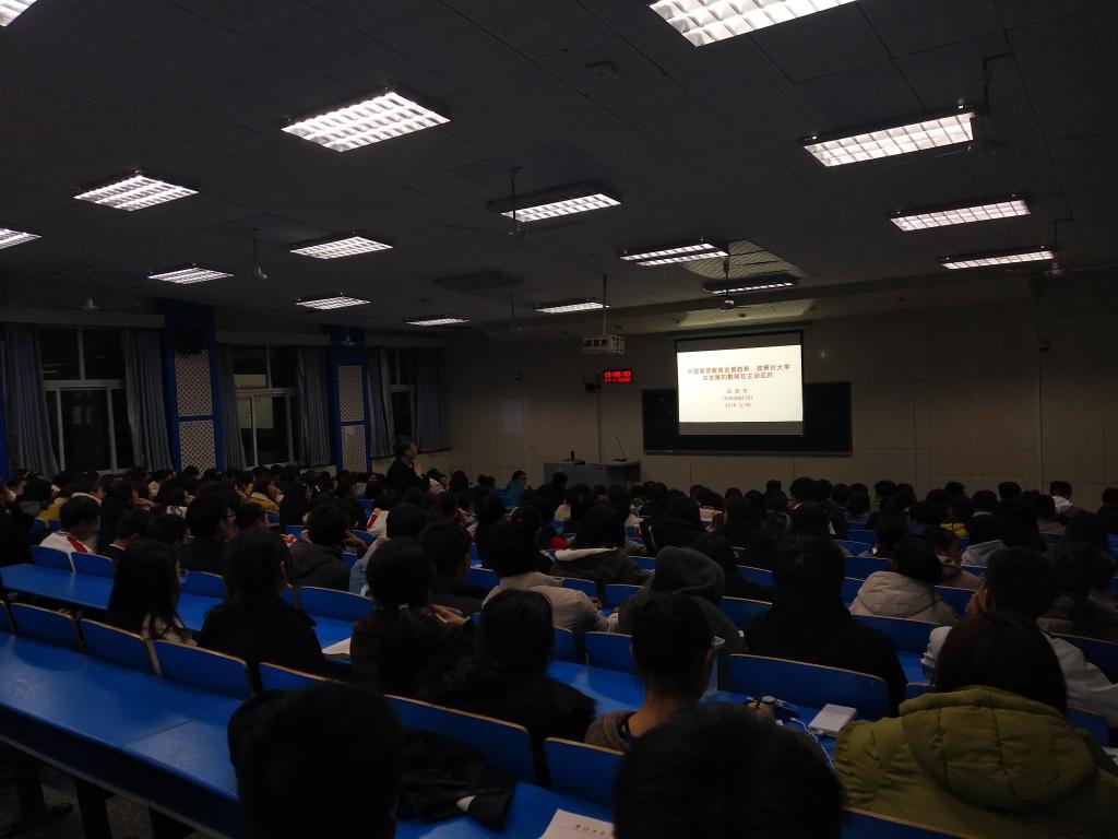 2019年12月5日,公司马跃东教授在4106教室,国鼎大讲堂--教授讲坛上作题为“中国高等教育发展趋势、政策对老员工发展的影响及主动应对”的学术报告。公司200余名师生聆听了报告。讲座由公司教学科研办公室主任李加加博士主持。