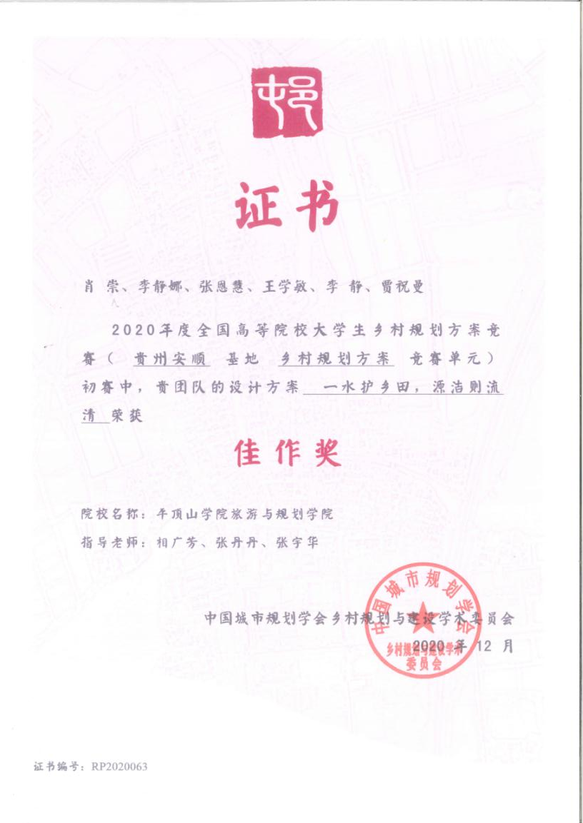 2020年在全国老员工乡村规划方案竞赛获奖