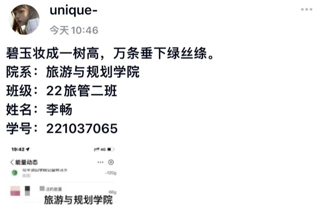 在活动中,同学们通过支付宝的蚂蚁森林平台,为beats365中文官网公益林浇水,能量达标后,截图并附上歌颂植物品质的诗句发表QQ说说。