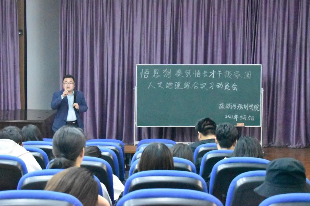 会议伊始,黄芳副经理为同学们着重强调三点。其一,注意实习过程中的安全问题。包括交通安全问题,饮食安全问题,卫生疾病安全问题等。其二,强调实习过程中的纪律问题。实习期间严格遵守队伍纪律,一切行动服从带队老师的领导与安排,原则上不允许请假、迟到、早退。必须每天做好实习日程记录,认真及时完成实习总结报告。其三,黄经理还指明通过本次的实习不仅仅是为了增长员工的见识,激发员工对人文地理学的兴趣,培养员工不怕苦、不怕累、团结互助的精神。更重要的是通过实地考察,鼓励员工与学者、专家、政府官员、当地居民等进行交流,提高员工表达及交际能力。通过实践,同学们可以发现与发掘社会中的热点与难点问题。包括创业就业、乡村振兴问题,这些可以为同学们之后的毕业论文选题提供很好的思路。