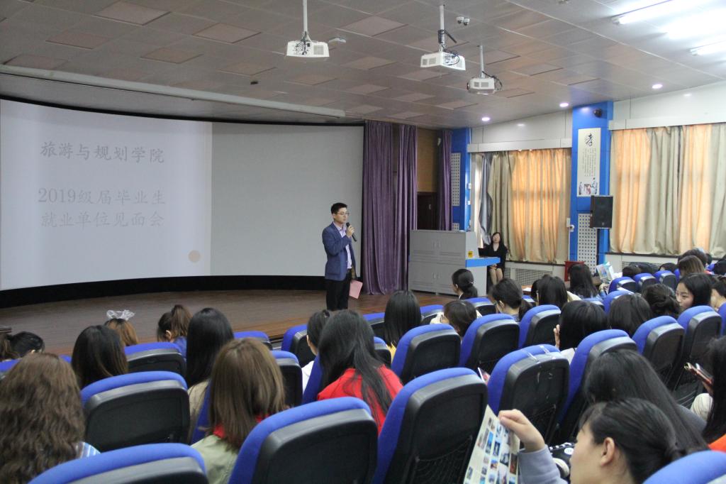 南阳建业森林半岛假日酒店、天瑞旅游集团股份有限公司、郑州麦普空间规划勘测设计有限公司、河南博源工程技术咨询有限公司、驻马店经济开发区高级中学、驻马店上蔡苏豫中学等六家单位到场,与同学们详细介绍了企业基本情况,并当场进行部分同学的现场招聘与面试,现场气氛活跃,得到毕业生和招聘单位的一致好评。