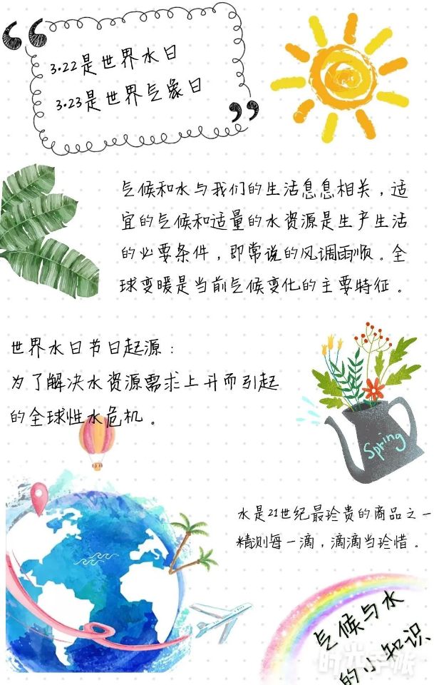 为了引起人们对目前水资源状况的关注和号召人们节约用水,beats365中文官网天文爱好者协会与根与芽小组于2020年3月19日——4月8日开展了“气候与水”为主题的节水宣传的活动,以积极响应2020年世界水日“坚持节水优先,建设幸福河湖”的主题。最后,希望每个成员都有一个健康美好的假期,也希望通过此次活动可以提高大家的科学文化素质,普及气象防灾减灾知识,提高节约用水意识,为节约水资源贡献一份力量,为地球做出一份贡献,保护环境,为地球增添一分水润。