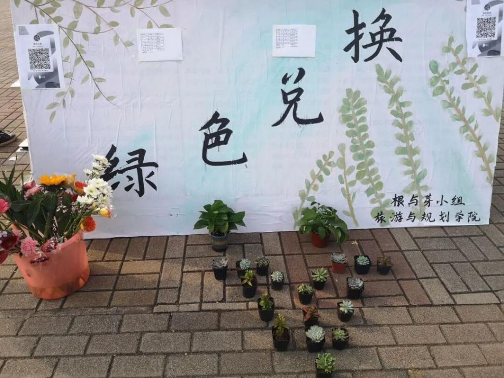 碧水蓝天、鸟语花香、阳光明媚是每一个人都向往的生活环境。为提高同学们的环保意识,共同营造一个绿色和谐的美丽校园。根与芽小组于11月28-29日在扇形广场举办绿色兑换活动。