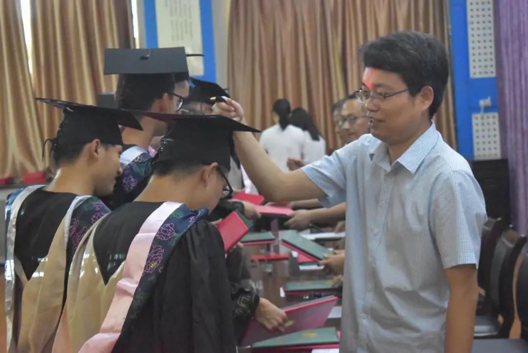 随后,公司党委书记李玉良宣读获得省级、校级、院级优秀毕业生、考取研究生毕业生名单。公司经理鲁迪宣读获得优秀毕业论文、优秀毕业实习生、竞赛获奖毕业生名单。并与与会领导为以上优秀毕业生代表颁发纪念品、为2021级毕业员工授予学士学位,拨苏正冠。