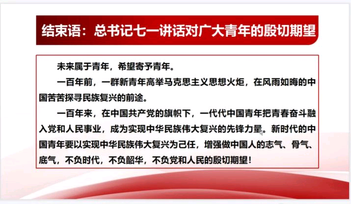 通过参加培训,各位学员更加坚定了入党的信心和决心。未来属于青年,希望寄予青年。学员代表表示要自觉用党员标准严格要求自己,积极完成组织安排的各项任务。在实践中锻炼自己、改造自己、完善自己,更进一步向党组织靠拢,争取早日成为一名光荣的共产党员。不负时代,不负韶华!