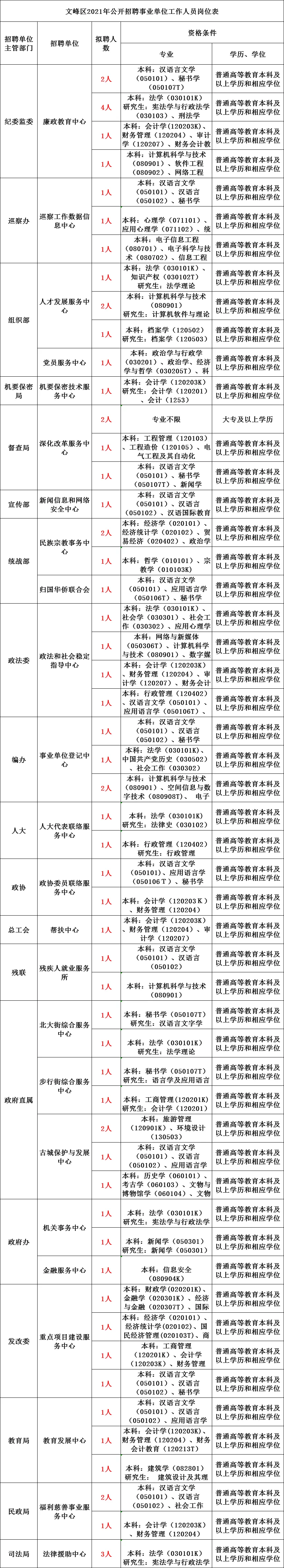 二、招聘范围、对象和条件(一)招聘范围和对象具体招聘单位、岗位、专业、人数和资格条件详见《文峰区2021年公开招聘事业单位工作人员岗位表》。长按识别下方二维码回复“文峰区”获取岗位表、进行网上报名