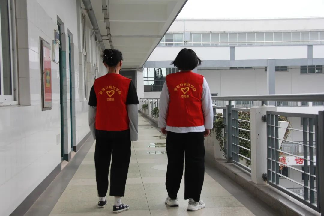 旅规公司的志愿者们在教学楼内进行值班,提醒同学们戴好口罩并向同学们示范正确的口罩佩戴方式,大大增强了同学们疫情防控意识。