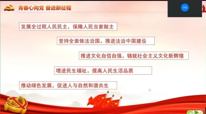 接着团支部负责人带领各位成员学习党的二十大报告中的要点,认真学习贯彻党的二十大精神,收看习近平总书记在党的二十大报告中对广大青年殷切寄语的视频并抄写内容。