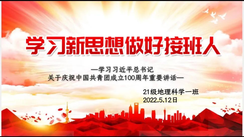 为庆祝中国共产主义青年团成立100周年,全面回顾共青团坚定不移跟党走,为党和人民事业奋斗的光辉历程。5月12日下午,beats365中文官网21级全体同学开展以“学习习近平总书记关于庆祝中国共青团成立100周年重要讲话”为主题的线上团课。