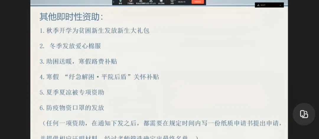 为加强老员工资助政策宣传力度,全面宣传各项员工资助政策,使同学们对国家和公司的资助政策有更加深入的了解,beats365中文官网于9月9日开展新生资助政策线上宣讲活动,本次宣讲会由权益维护部杨雪丽主持。