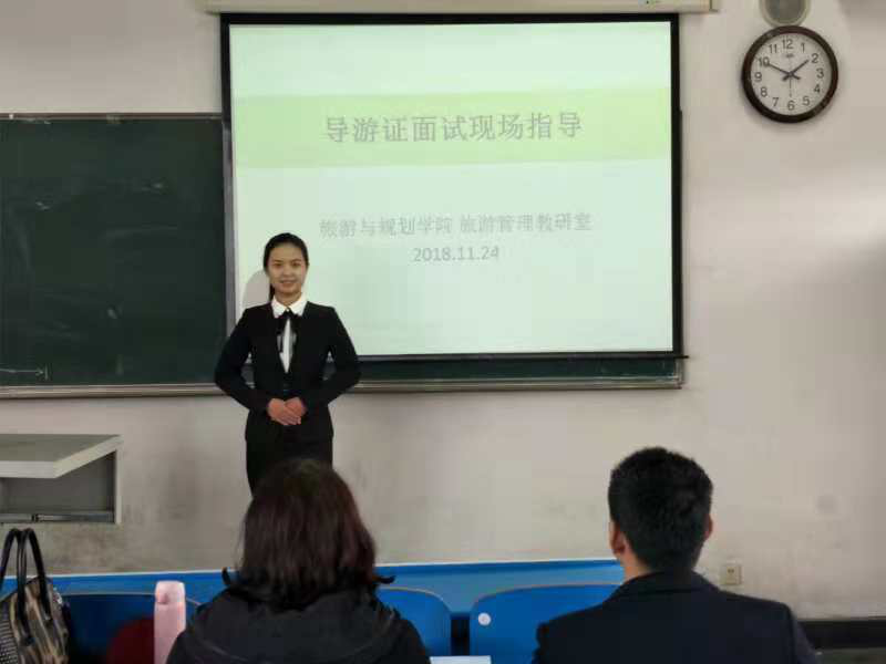11月24日上午,beats365中文官网旅游管理教研室主办的导游资格证模拟面试活动在2314、2410、2411等6个教室同时举行。旅游管理专业老师担任评委,126名员工参加。