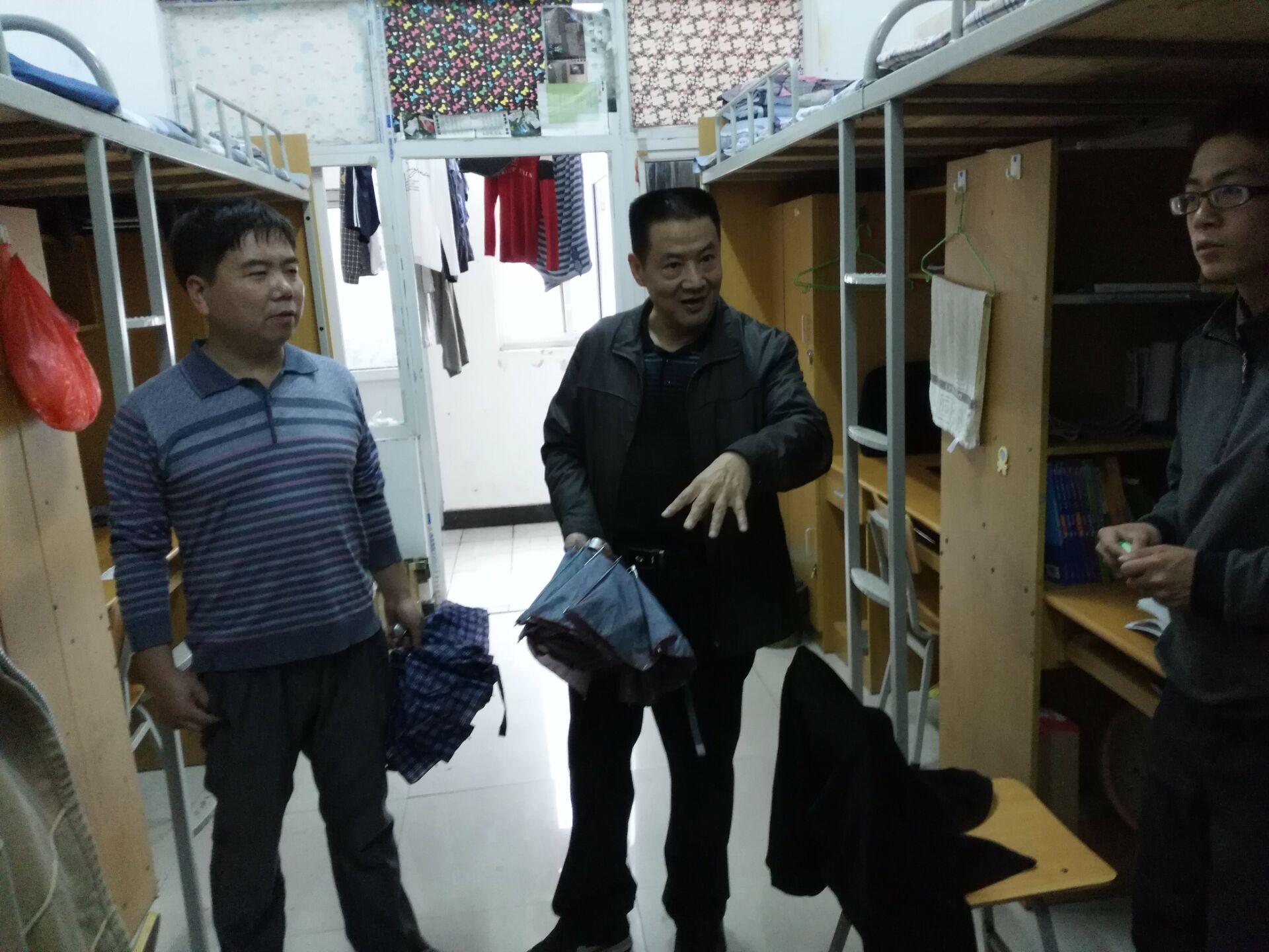 本次宿舍检查的范围涵盖了公司所有的男生宿舍。检查期间,院领导与同学们亲切交谈,了解大家在宿舍的学习生活状况及宿舍存在的问题,对整体状况良好的宿舍进行表扬,同时对个别卫生状况欠佳、物品摆放杂乱的宿舍提出了批评;在检查大三、大四宿舍中,王万强指出宿舍管理工作要多动脑筋、创新方法,要根据宿舍实际情况制定出切实可行的宿舍管理方案和检查标准,尤其是要借助公司开展的“四讲四有,四争四创”评优争先活动,使公司宿舍面貌有较大改观。检查结束后,王万强就公司创建文明宿舍提出了四点要求:一是要确保宿舍整洁,宿舍整洁是员工精神面貌的重要体现;二是要抓示范树典型,定期选出模范宿舍,组织其他宿舍同学参观学习;三是宿舍同学要团结一致、互相关心、互相帮助,营造积极向上的宿舍氛围;四是增强安全防范意识,自觉维护宿舍安全,保持室内清洁,营造舒适的生活环境。