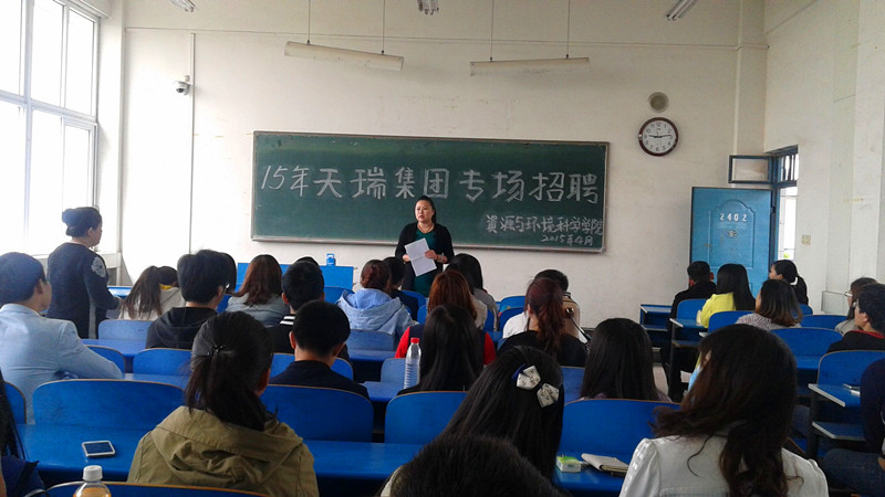 4月16日,公司2015届毕业生专场招聘会在2号教学楼2402教室举行。本次招聘会的招聘方是河南省天瑞集团旅游发展有限公司,招聘岗位有文秘、导游、人事专员、网络管理员、财会人员、票务人员、营销人员、采购人员、酒店人员等9个岗位,共有50人参加了本次招聘会,主要以旅游管理专业员工为主。