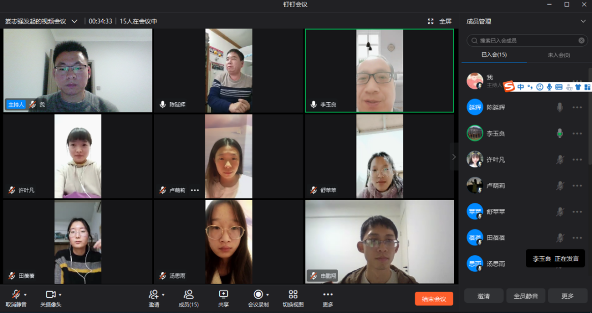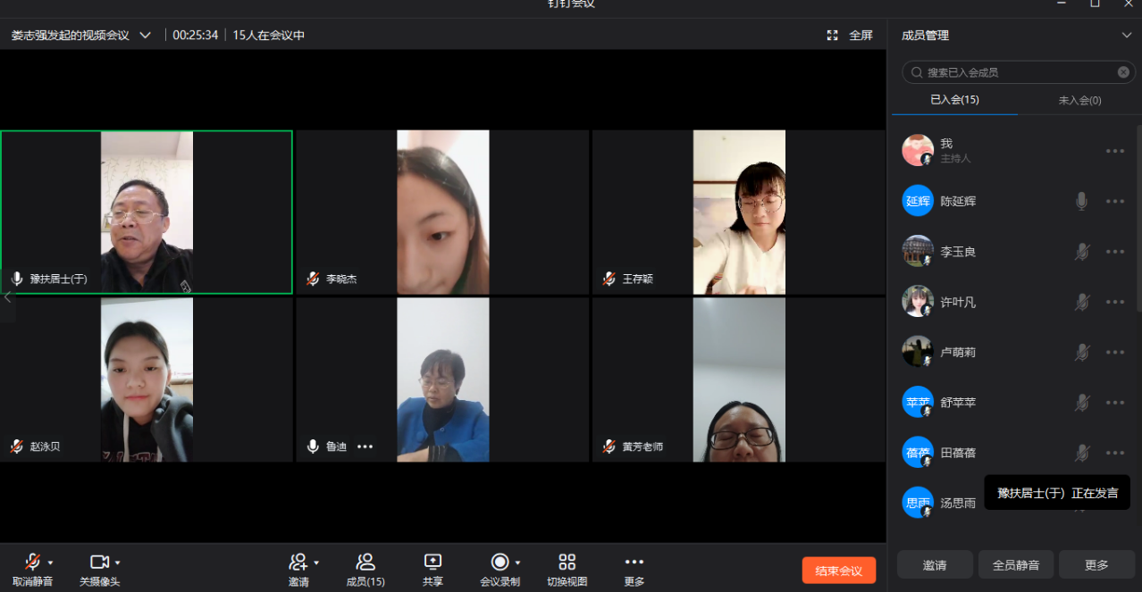 会议伊始,实习指导老师娄志强先对在银基度假区实习的八名员工基本情况进行汇报。然后八名同学依次发言,分别介绍了隔离地点的居住情况、隔离期的生活情况和学习情况,并对隔离酒店齐全的设备、优质的服务表示满意,对公司的关怀和支持表示感谢。