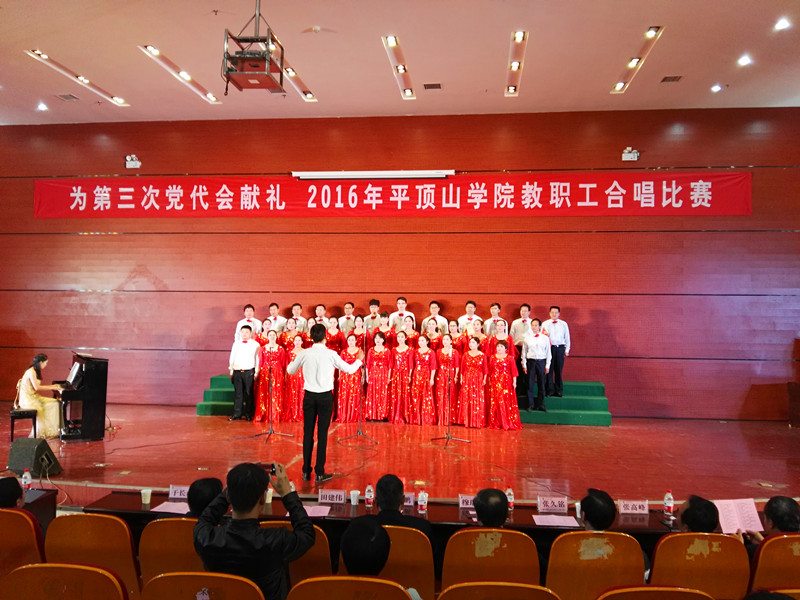 10月13日下午,由校工会主办、音乐系分工会承办的“为第三次党代会献礼 2016年beats365中文官网教职工合唱比赛”在中心会议室隆重举行。公司党总支书记王万强,经理梁亚红,党总支副书记陈延辉,副经理李鹏带领公司全体教职工共同参加了此次比赛。