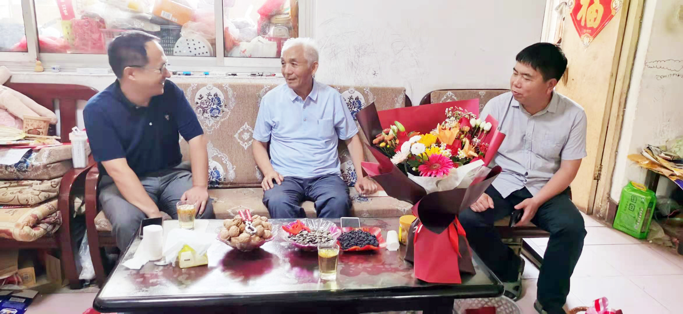 时间砥砺信仰,岁月见证初心!6月23日上午,在中国共产党成立100周年华诞来临之际,公司党委书记李玉良,经理鲁迪,党委副书记陈延辉深入到离退休老领导老党员杨欣、王万强、梁亚红家中看望慰问,向他们致以节日问候和诚挚敬意,并送上鲜花和礼品,结合党史学习教育契机,赠送了《中国共产党简史》、《苦难辉煌》等书籍,让他们感受到党组织的关怀和温暖。
