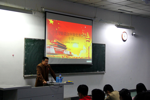 11月7日晚,公司党总支书记王万强在4406教室作了题为“大学阶段如何做优秀员工干部”的培训讲座。团总支副书记张宁主持,辅导员老师于海龙、17级各班班委以及党团学全体成员参加了本次培训讲座。