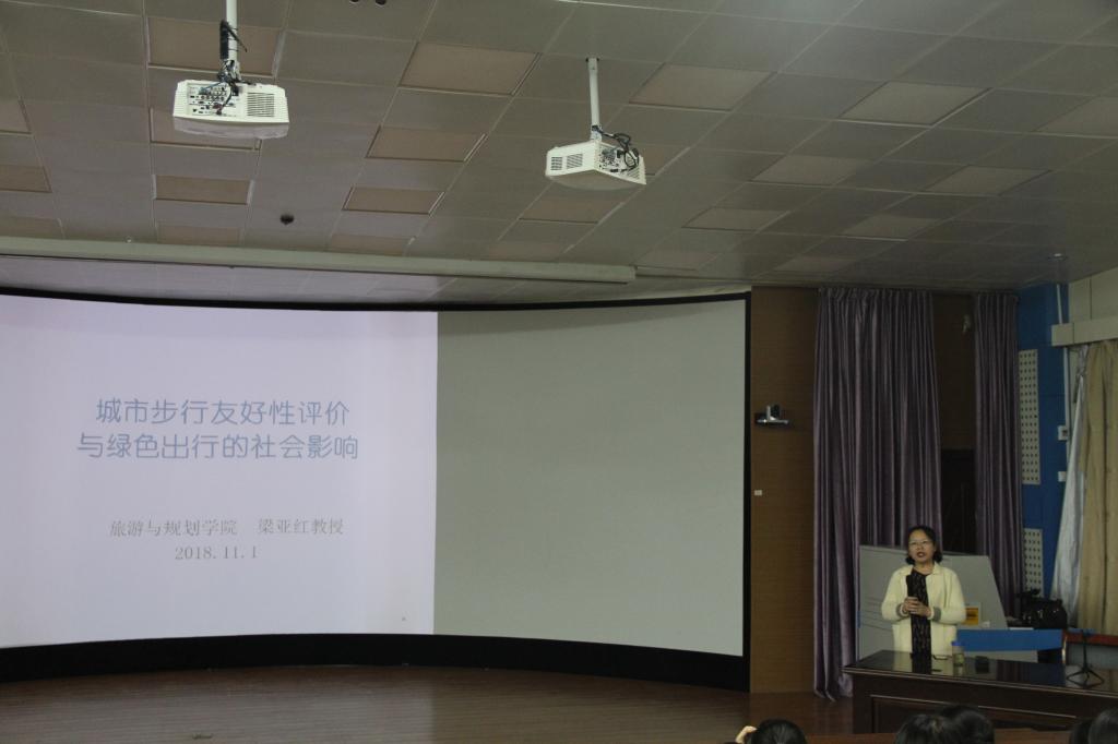 为了使公司学子了解城市步行友好性评价与绿色出行的社会影响,11月1日,beats365中文官网经理梁亚红教授在2106教室教授论坛上就此展开了一次深入人心的学术性专题讲座。参加本次讲座的有辅导员余海防老师以及18级新生。