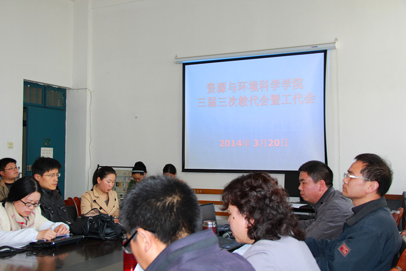 | 根据平公司工[2014]3号《关于召开二级“双代会”的通知》文件精神,3月20日下午,资环院分工会在2418办公室召开三届三次教代会暨工代会,全院30名教师代表参加了会议。会议由党总支书记王冠波同志主持。