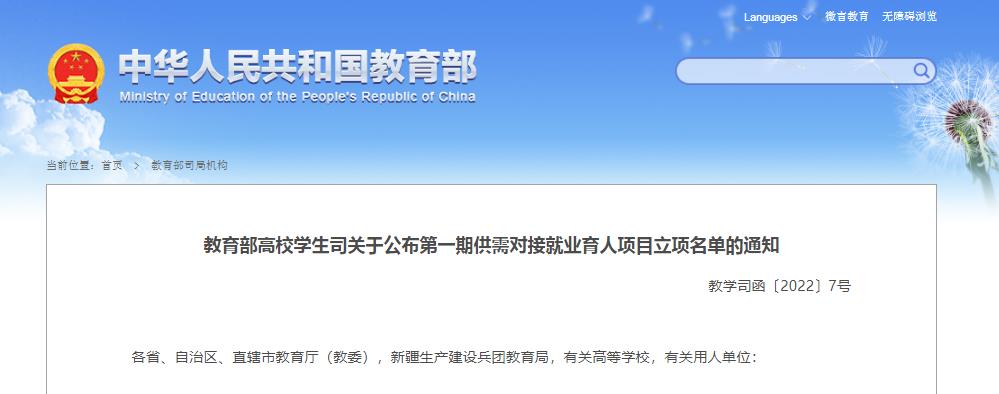为落实党中央、国务院“稳就业”“保就业”决策部署,深化产教融合、校企合作,推动人才培养与就业有机联动、人才供需有效对接,教育部高校员工司组织有关用人单位和高校实施供需对接就业育人项目。