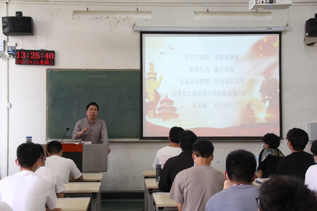 保家卫国终不悔,绿色军营献青春。2022年是党的二十大召开之年,是实施“十四五”规划,开启全面建设社会主义现代化国家新征程的重要一年。希望各位同学能积极参与征兵入伍的考核工作,传承红色基因,踊跃参军报国,努力为国防“强起来”、人民“富起来”奋勇担当,为军营献出自己的青春和热血,在勠力实现中国梦、强军梦的时代大潮中创造辉煌人生!