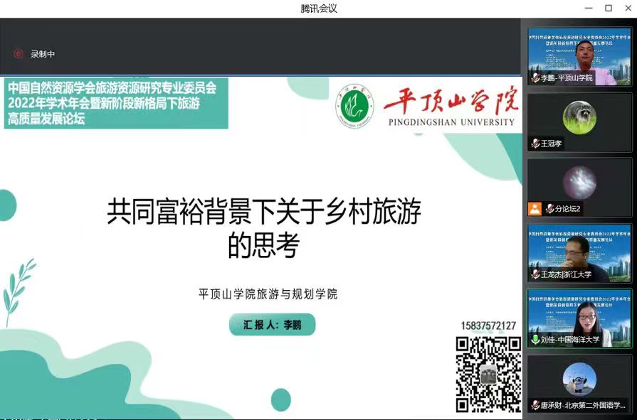 受学术年会组委会的邀请和委托,公司李鹏副教授担任了学术年会第四分论坛的主持人,并在学术年会上作了题为“共同富裕背景下关于乡村旅游的思考”的学术报告。在报告中,李鹏副教授阐释了共同富裕的内涵,分析了乡村旅游促进共同富裕的内在机理,探讨了共同富裕背景下乡村旅游的提升路径。李鹏副教授的学术报告选题新颖,逻辑层次清晰,受到了与会专家的高度评价和广泛好评。