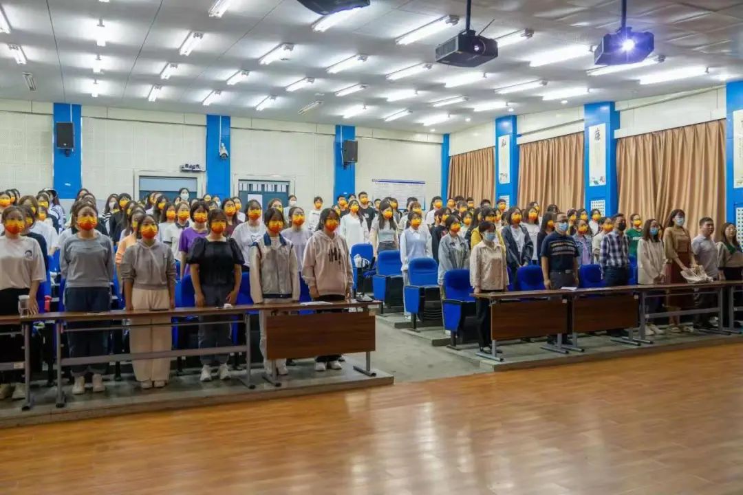 由于疫情原因,本次开学典礼采用“现场+云端”的方式进行。beats365中文官网于9月26日在2106、1106、2401和2402教室组织22级新生线上观看开学典礼。
