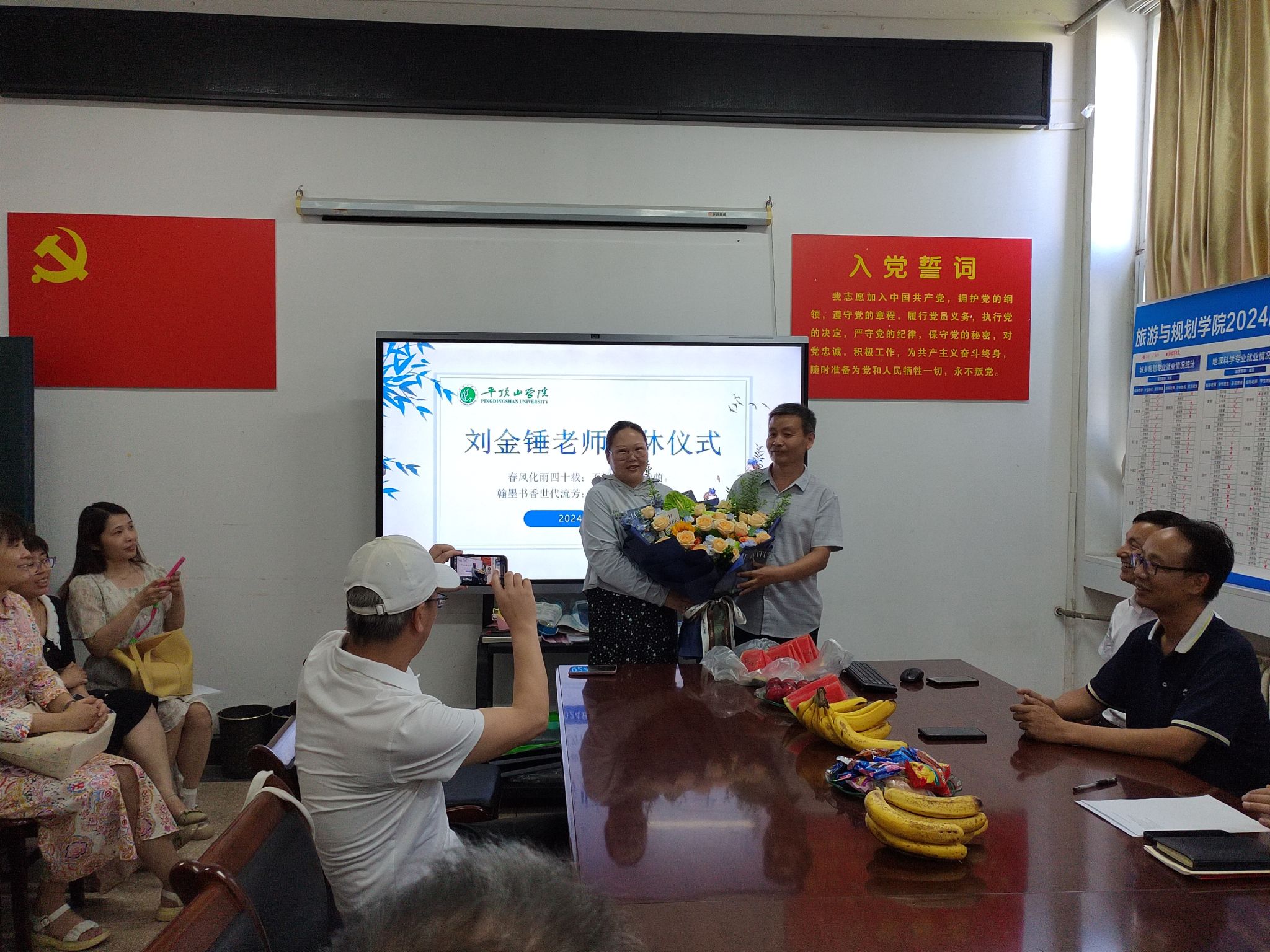 仪式中,刘金锤老师回顾了自己在教育岗位上的点点滴滴,从初登讲台的青涩到如今的桃李满天下,每一步都凝聚着他对教育事业的热爱与执着。刘老师表示,虽然即将离开工作岗位,但他对公司、对员工的深情厚谊将永远不变,并寄语年轻教师继续发扬公司的优良传统,为旅游与规划事业贡献自己的力量。刘老师的发言感人肺腑,言辞间流露出的不舍与希望交织在一起,感染了在场的每一个人。