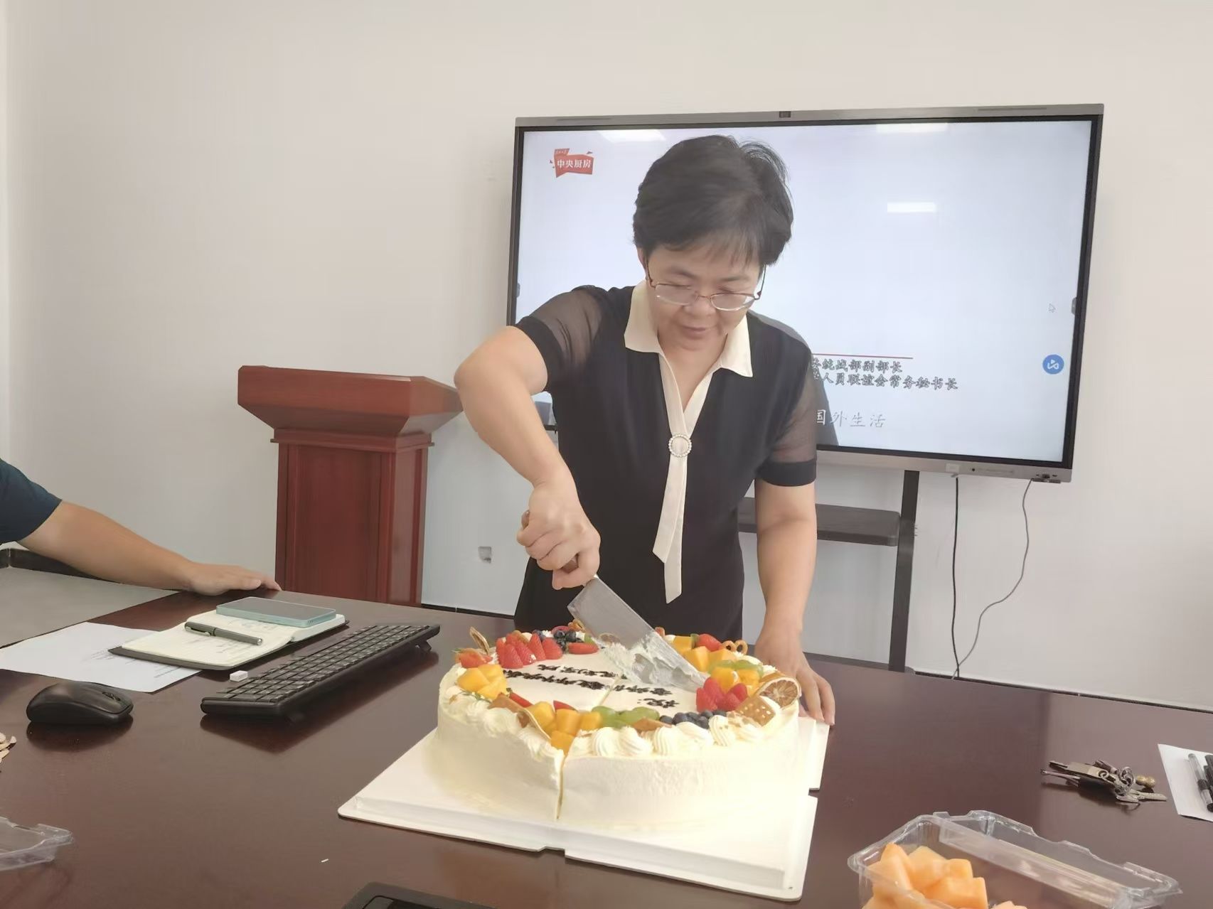 最后,经理鲁迪为全体老师分切蛋糕,送上节日的温馨祝福!