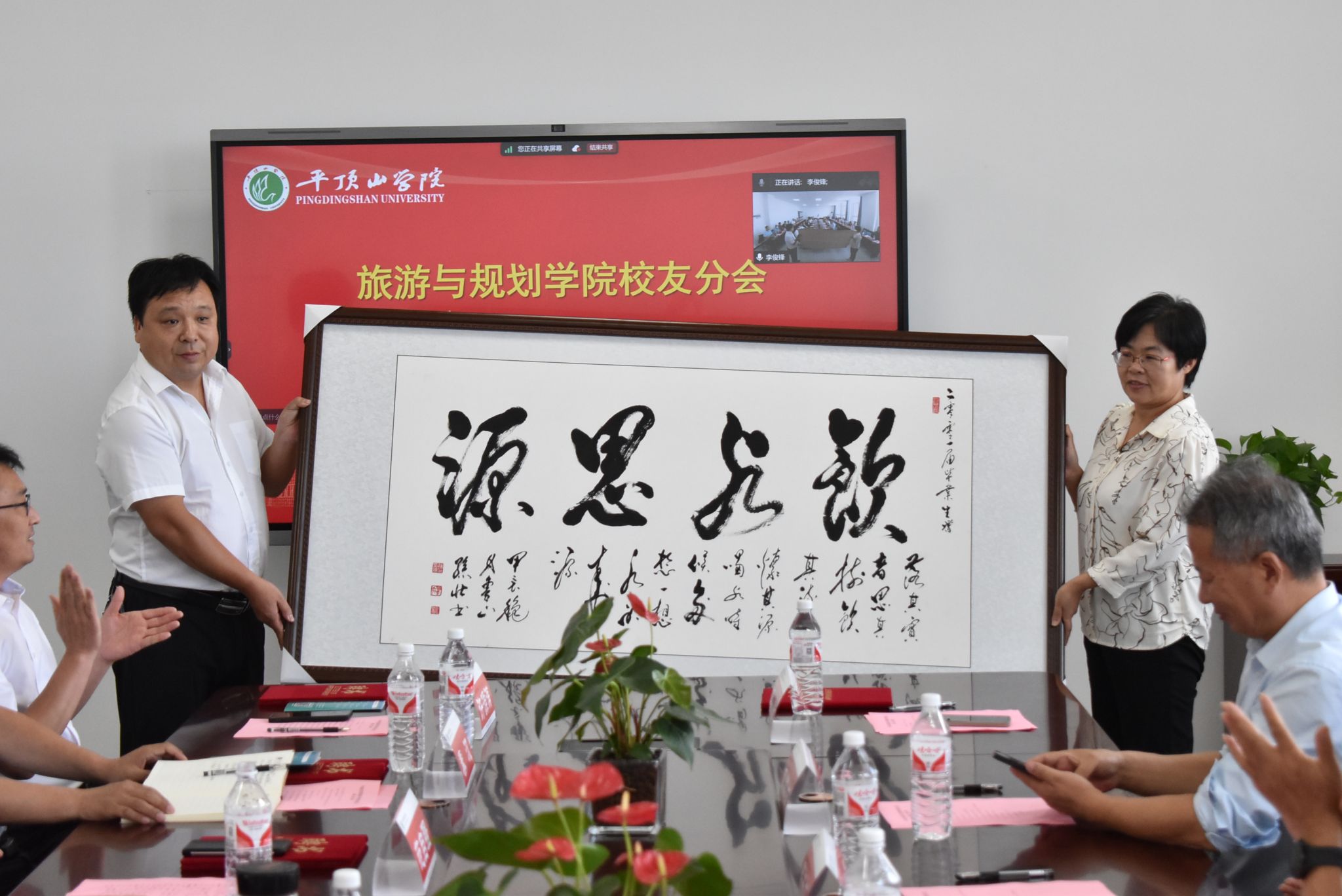 beats365中文官网1989 级员工李秋生、2006 级员工刘申、2016 级员工徐阳作为员工代表在大会中发言。他们表达了对母校的感激之情,感谢员工分会的成立为大家的相聚创造了平台。同时,他们感谢恩师的培养和教导,让他们成为栋梁之才。他们表示,在未来,他们将不负母校的厚爱与期待,在各自的工作岗位上踏实勤奋,用实际行动回报母校、回报社会。1998级员工高自阳为员工分会捐赠书法作品一幅,用“饮水思源”四字表达对母校的感激之情。