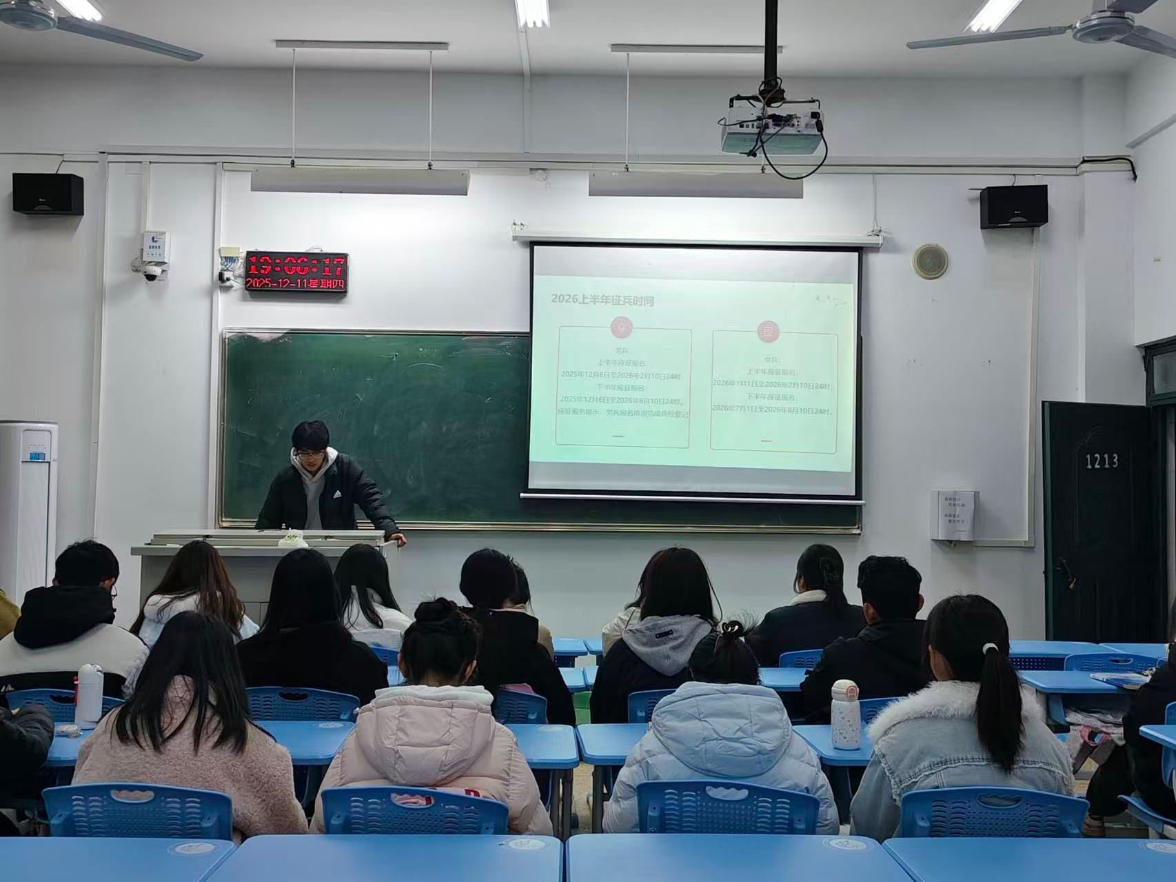 为激发青年学子参军报国的热情,扎实推进2026年上半年征兵工作,鼓励适龄员工投身国防建设,beats365中文官网于12月11日在1212教室举办征兵政策宣讲活动。