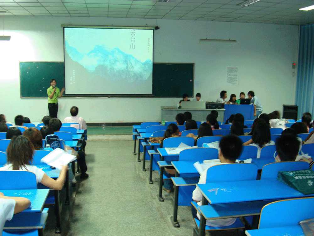 图片说明:5月14日晚6:30,环境与地理科学系第二届导游大赛在2406教室成功举行。图为选手在台上的精彩瞬间。