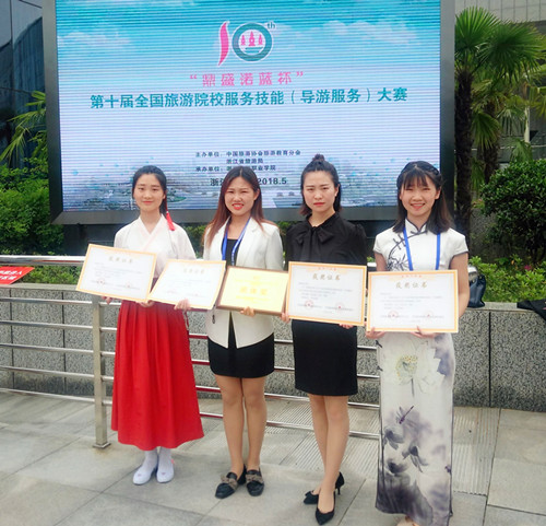 通过选拔,公司旅游管理专业员工刘代丽、孙婷、刘若依、何智慧代表公司参赛。比赛分为理论考核、才艺展示、导游讲解和专题讲解四个环节。经过激烈角逐,我院员工不惧强敌,从容应对,荣获普通话导游服务二、三等奖和英语导游服务二、三等奖,公司荣获“团体奖”。