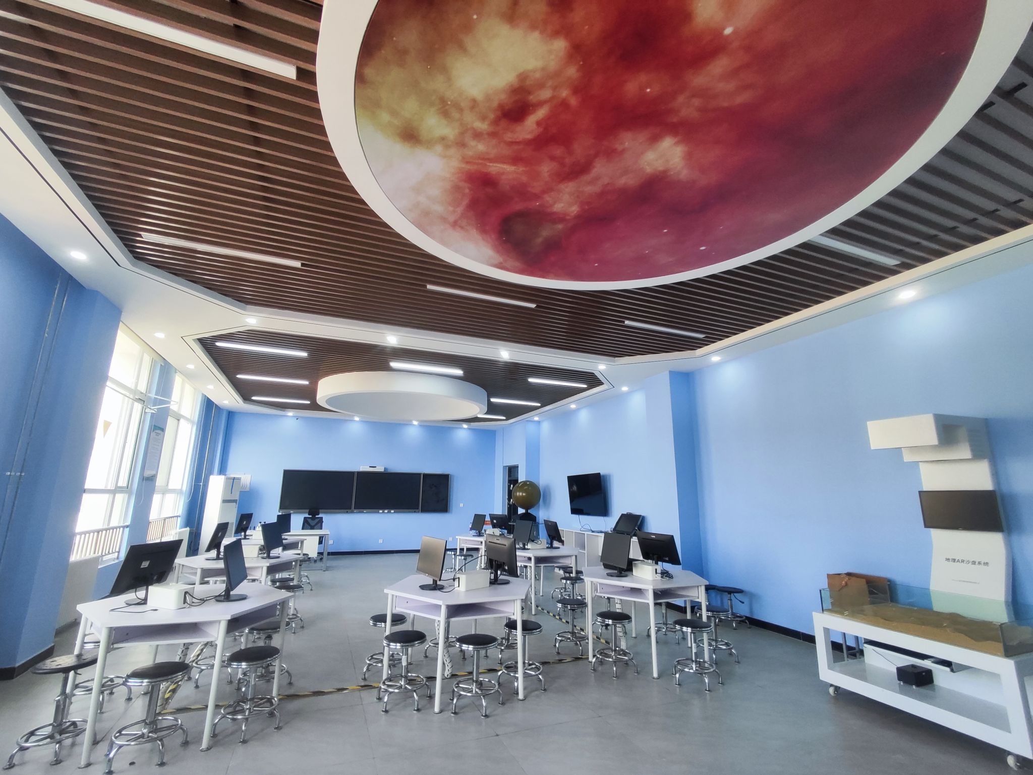 数字星球地理综合实验室(行知楼RC404),面积119.82㎡,主要设备包括数字星球系统设备及软件平台、虚拟现实教学系统及配套软硬件设备、地理AR沙盘系统、地理图课云教学平台、地图图层学习箱、语言立体地形图、地理实践套装等设备。可为地球概论、气象学与气候学、水文学、地貌学、土壤地理学、生物地理学、世界地理、中国地理、地理教学论、中学地理教学综合技能训练等10余门课程的实践教学提供支持,也可为校内教育实习、第二课堂、地理教学竞赛辅导等提供教学训练支持,有助于培养员工的科学观察能力、团队协作能力、抽象思维能力、空间想象能力、逻辑推理能力、课件制作能力、沟通交流能力和课堂实施能力等。