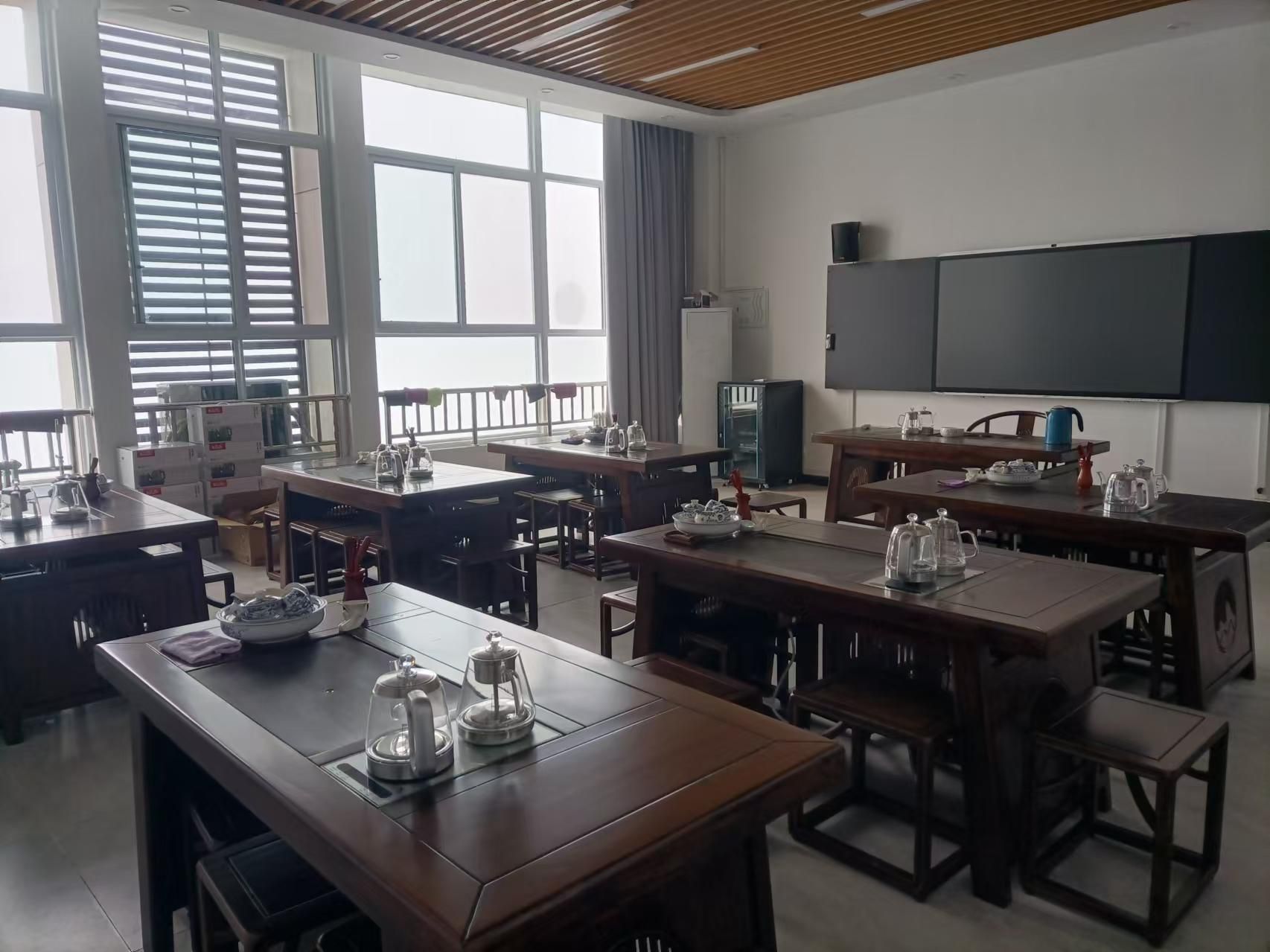 茶艺室位于行知楼C楼RC403,面积61.38 m²,承担着旅游管理专业和全校的《茶文化与茶艺》课程,有助于员工了解各种茶桌、各色桌布、各式茶服、各种茶具(白瓷、青瓷、青花瓷、紫砂等盖碗及玻璃杯)、各类茶叶及它们的使用环境;有助于员工熟练开展茶叶评鉴、冲泡和茶席设计等茶艺操作,培养员工的茶艺操作能力;有助于弘扬中华茶文化,增强文化自信。